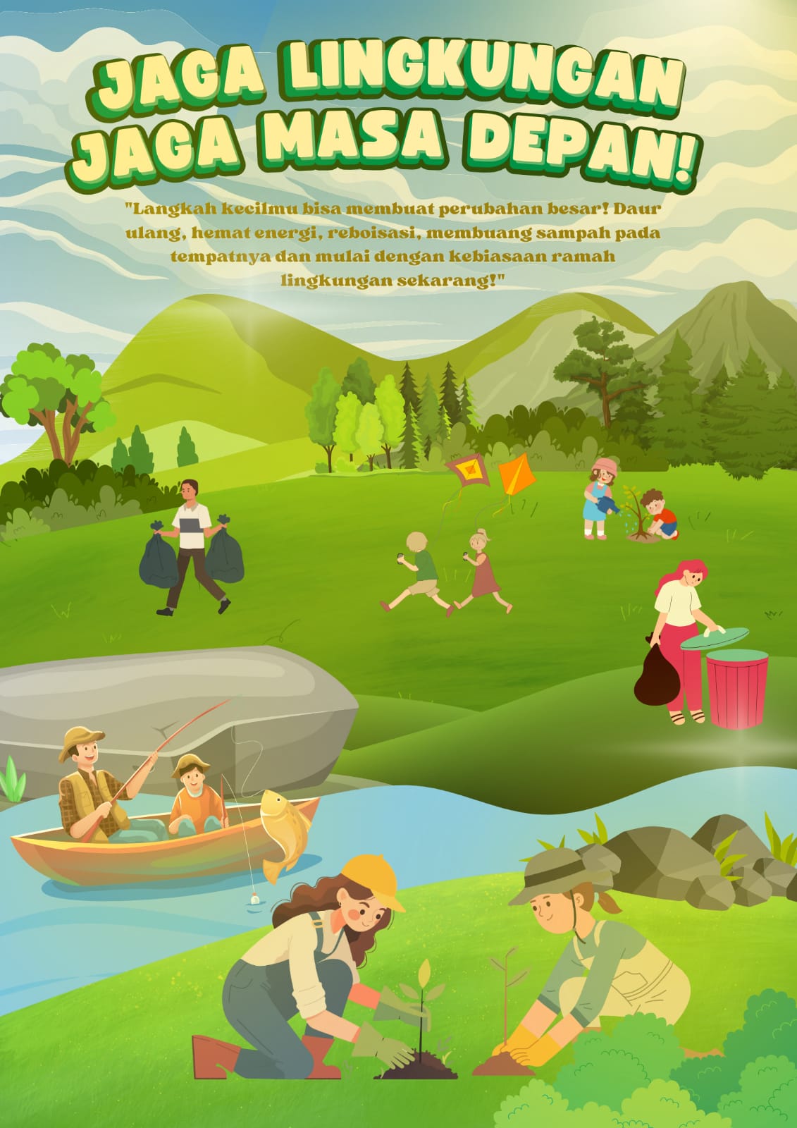 - DEKSRIPSI : Karya yang berkaitan dengan tema "Bumi berbisik" untuk memperingati hari Bumi yang jatuh pada tanggal, 22 April. Berisikan tentang keindahan Alam yang dapat kita rasakan sebagai manusia, namun apa artinya jika kita menyia-nyiakan keindahan alam tersebut? Maka, karya saya berisikan interaksi manusia dengan alam bebas, dimana “Langkah kecilmu bisa membuat perubahan besar! Daur ulang, hemat energi, reboisasi, membuang sampah pada tempatnya dan mulai dengan kebiasaan ramah lingkungan sekarang! menandakan kita semua dapat menjaga keindahan Bumi dengan memperlakukan Bumi dengan baik, maka, Bumi akan membalas perbuatan kita dengan jaaauh lebih baik! Dengan begini, saya harap melalui Karya saya, Bumi dapat senantiasa hijau, bersih, dan sehat untuk masa kini dan masa depan!