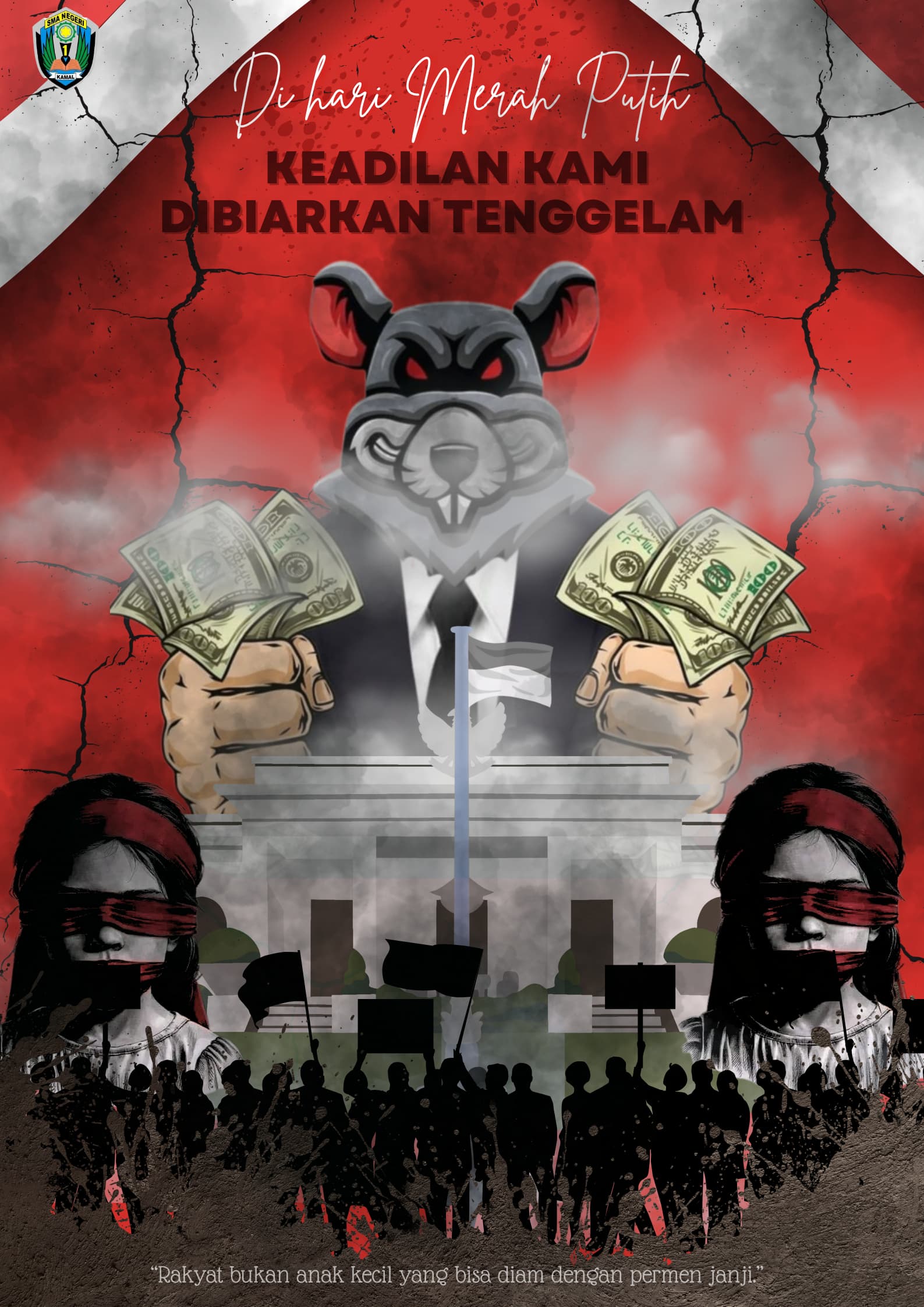 Poster ini adalah bentuk ekspresi perlawanan terhadap ketimpangan sosial dan kemunafikan yang masih terjadi di negeri ini, bahkan di saat bangsa merayakan kemerdekaannya. Dengan latar dominan merah putih yang retak, karya ini menggambarkan bahwa semangat kemerdekaan kini ternoda oleh keserakahan dan kebungkaman.